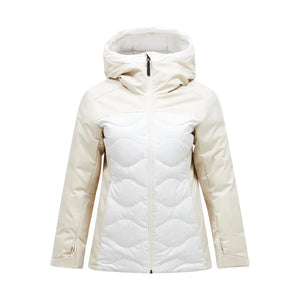 Adjustable drawcord at bottom hem, Adjustable sleeve hem with velcro straps, Critical seam sealed, Duck down, 700 fill power, 90/10 down/feather, Fixed snow skirt with snap-in ski pant system, Goggle wiper, Hybrid 80gr/m2, Inner mesh stash pocket, Made without intentionally added PFAS, One hand hood adjustment, P-logo embroidery at sleeve, Peak Performance embroidery at chest, Quilted in our iconic Helium pattern, RECCO® Rescue System reflector, Responsible down standard, Sterilization Permit no. PA 9900(CN), Storage mesh pocket on inside, Synthetic sheet insulation, Zippered hand pockets, Zippered ski pass pocket