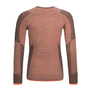 The 230 COMPETITION LONG SLEEVE for women helps you deliver top sporting performance with a whole new look – whether you’re on a ski tour, freeriding, or on a high alpine tour. The 230 MERINO COMPETITION line is produced using a seamless circular knitting technique so that when the weather gets cold and the going gets tough, every area of the body is covered by the right thickness of merino wool. The basic ribbed structure consists of 190 g/m² merino, giving the functional shirt elasticity for maximum freedom of movement. A particularly breathable mesh structure is used in heat spots, while 240 g/m² wool warms areas that are sensitive to the cold, such as the kidneys. This body-mapping principle allows for a close fit while providing maximum ventilation. At just 16.5 microns in diameter, the delicate merino fibers feel pleasantly soft against the skin and at the same time make the functional shirt quick-drying and very durable. The new color gradient from light to dark is created by knitting in mottled yarn and gives the functional shirt a special pattern thanks to the body-mapping structure. This puts the 230 COMPETITION LONG SLEEVE for women out in front when it comes to looks, too!